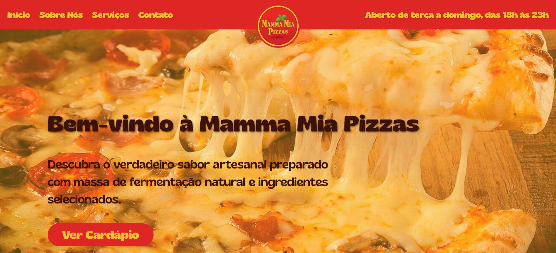 Website de uma pizzaria fictícia criado para praticar e aprofundar conceitos de HTML5 e CSS3, com foco em design responsivo, layout (Flexbox/Grid) e usabilidade.