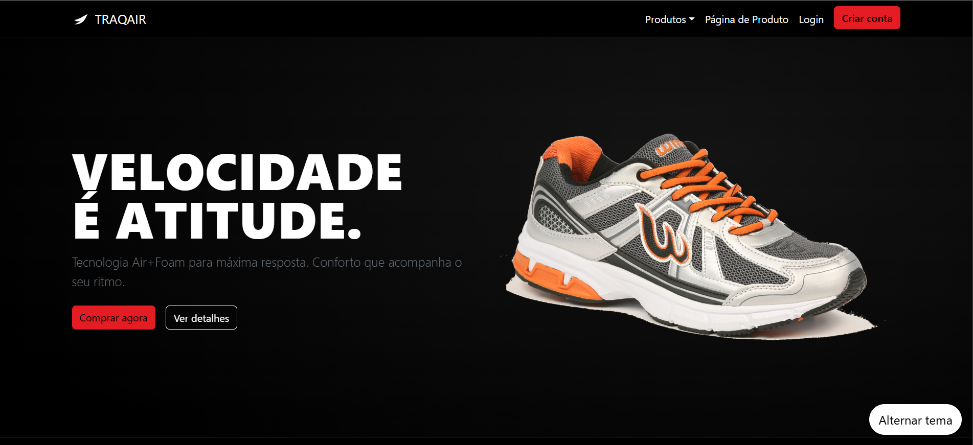 E-commerce responsivo de uma loja de tênis, desenvolvido para aplicar conceitos avançados de front-end. O projeto inclui catálogo de produtos, detail pages, e uma área de login/registro.
